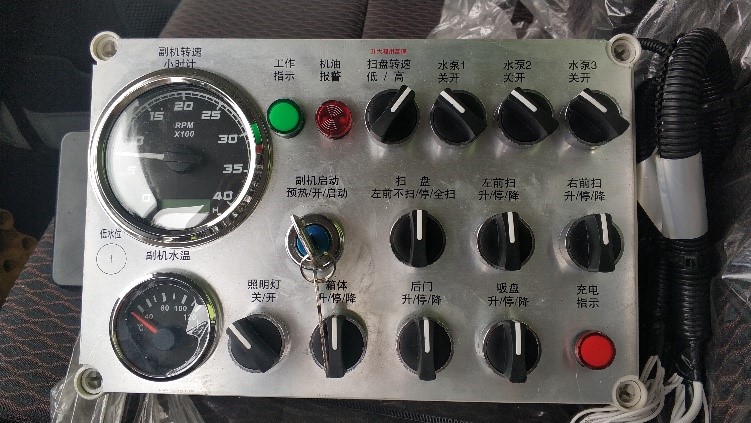 该扫路车采用东风多利卡(轴距3800)国VI二类底盘改装,加装副发动机、风机、 清水箱、垃圾箱、左右立扫、后置吸盘,扫盘降尘系统,液压系统、专用装置电控系统和副车架等改装而成(可加装前冲后洒)。